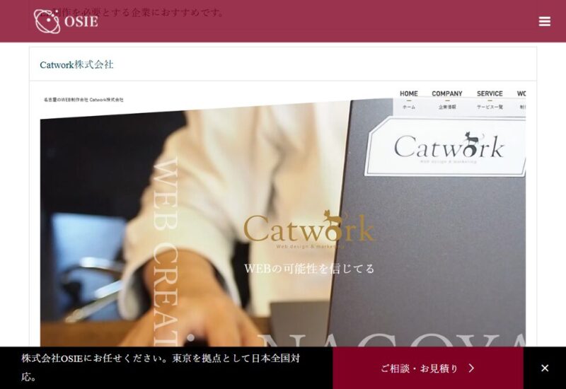 株式会社OSIE様は、専門家が連携し、Webサイト制作からマーケティングまで一貫して高品質なサービスを提供している企業です。 是非ご覧ください。