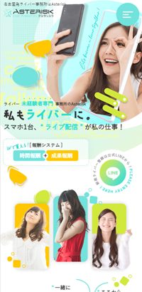 グラデーションや写真を多用したデザインで、楽しさや元気さを表現。現代におけるライバー志願者に向けて、楽しそう!私もなりたい!が伝わるようなレイアウトを意識しました。色んなタイプの女性写真を使うことにより、志願者の幅が広がるようなイメージも持たせています。