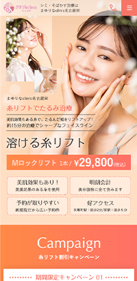 前回のLPに引き続き、糸リフトに関する情報が多いLPの構成なので、分かりやすくイラストや画像を多用して飽きない見せ方を工夫しました。